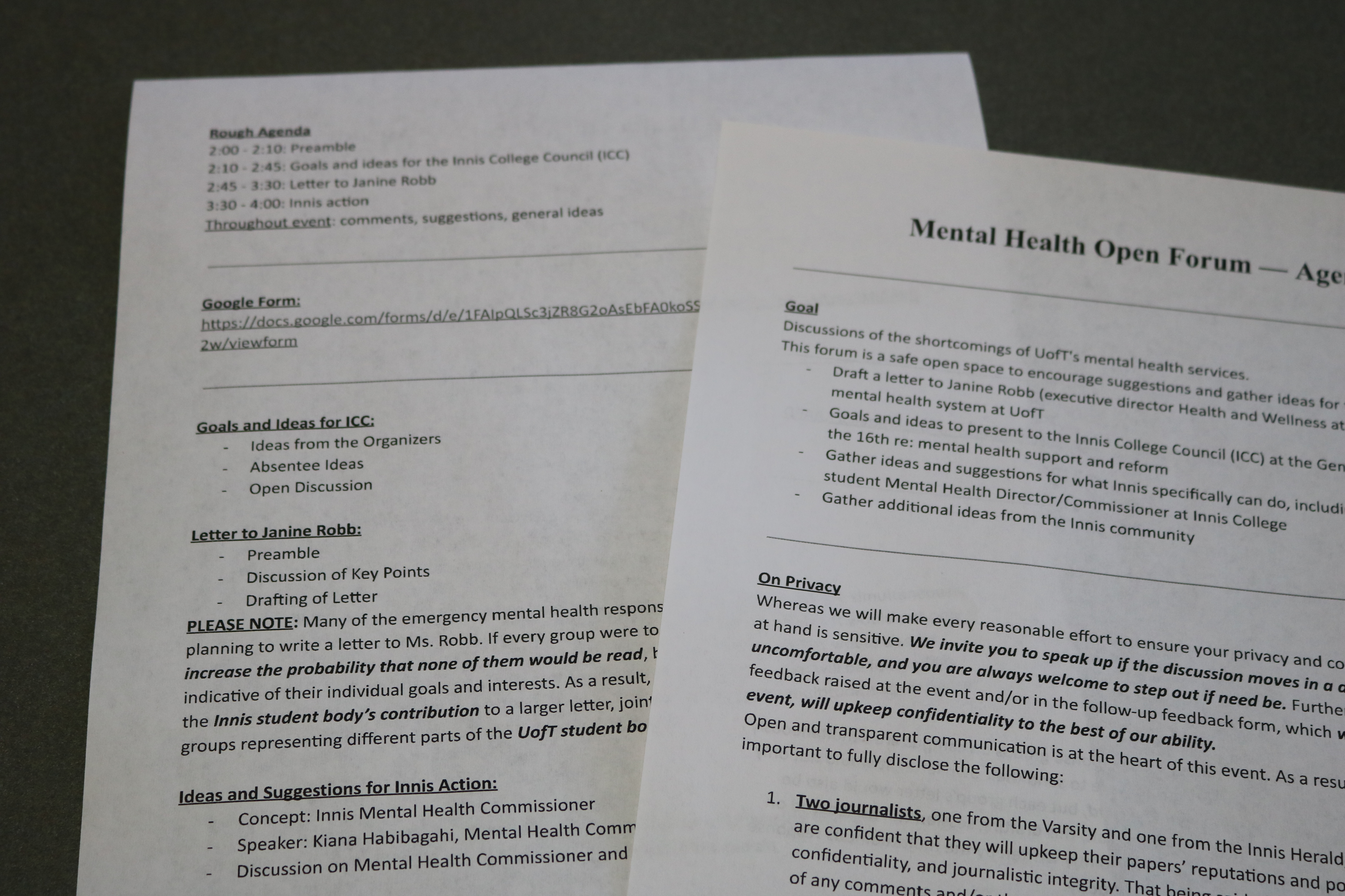 Gathering in the Innis Residence Events Room on March 29th, Innis first-years Oliver Daniel, Annie Liu, Kathy Sun, and Jehan Vakharia hosted the first of a series of Mental Health Open Forums in response to the recent death at Bahen Centre and resounding calls for mental health reform. Among the topics brought to the table, one key goal was to discuss the creation of a Mental Health Commissioner within the Innis College Student Society (ICSS).